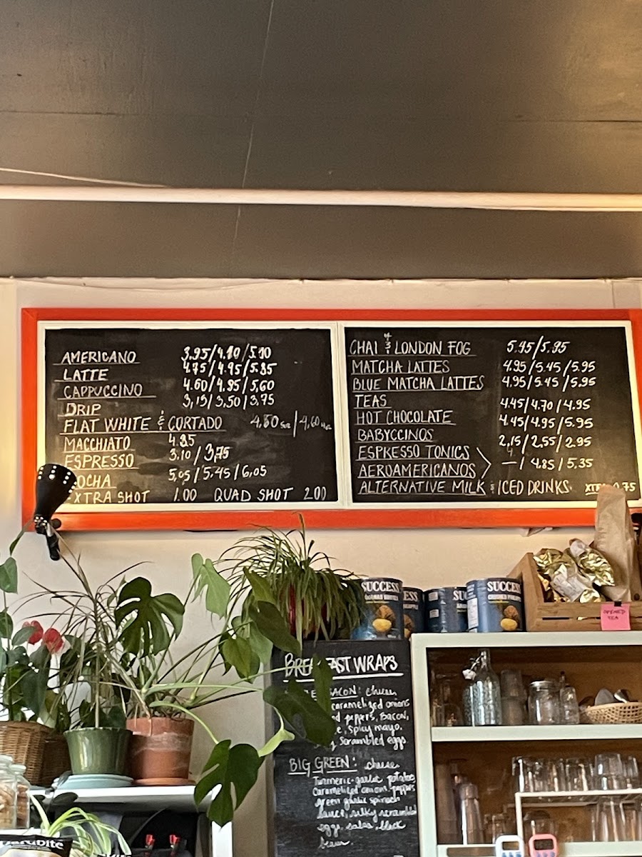 The menu boasts a variety of delightful beverages, with the Large Hazelnut Latte standing out among the offerings—a must-try for anyone seeking a rich, satisfying sip. Complement your drink with their double chocolate chip cookies or the delectable Ham & Cheddar Croissant. The Peachy Green Smoothie adds a refreshing twist, catering to both sweet and savory cravings.